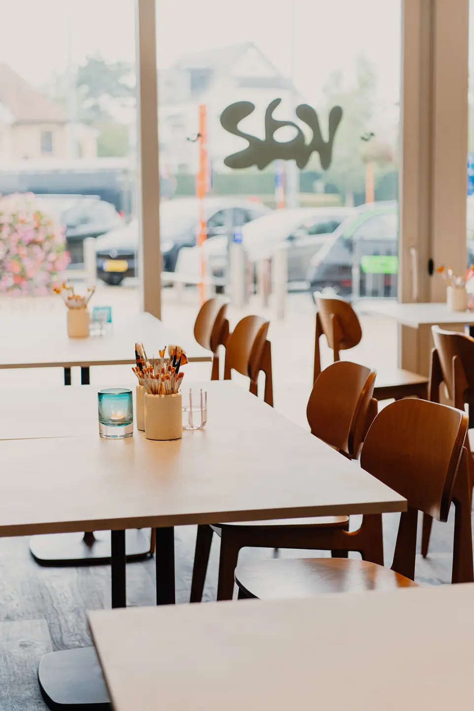KaZ ademt gezelligheid uit en biedt plaats aan maximaal 26 personen – de ideale setting om samen met vrienden, familie of collega’s een creatief moment te beleven. Op zonnige dagen geniet je van het overvloedige natuurlijke daglicht, en op sombere dagen maken we het extra knus met de open haard en kaarslicht.