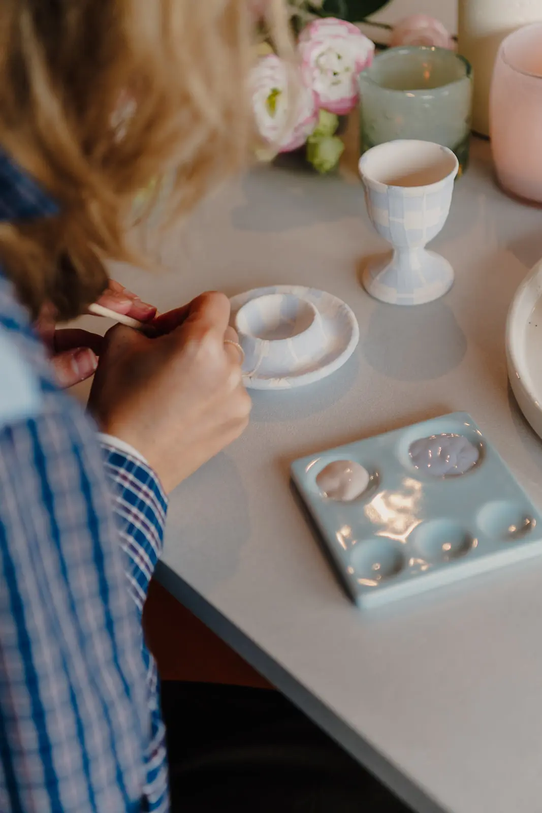 Na het schilderen zorgen wij voor de afwerking. Je stuk wordt geglazuurd en gebakken in onze oven, zodat het stevig, glanzend en helemaal gebruiksklaar is.